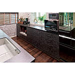 以前のカップボードの吊り戸棚はモノの出し入れが不便でしたが、今回はロータイプにしてひと目で取り出せるようになりました。戸棚を取り払ってあらわれた壁面には凹凸感のある素材をあしらい、LDK全体を好みのコーディネイトに仕上げました。