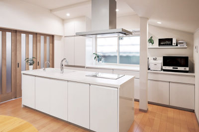 「こまめに片付けてキレイに保つようになった」と、奥様も娘さんもお気に入りの美しいキッチン。