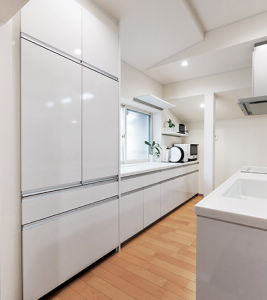 「こまめに片付けてキレイに保つようになった」と、奥様も娘さんもお気に入りの美しいキッチン。