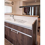 お子様の独立を機に、ご夫婦で心地よく過ごせる空間にとLDKを一新されたK様。ご希望だった明るさ・開放感を実現するために、キッチンをL型から吊り戸棚のないI型対面式に変更し、ダイニングを広めに確保。さらにリビングとダイニングの間にあった引き戸と垂れ壁をなくし、LDKをひとつながりの空間に仕上げています。横方向の広がりだけでなく縦方向への開放感も叶えているのが、解体工事で現れた旧居の美しい梁。その佇まいの美しさに感銘を受け、急遽プランを変更。現しにした梁を際立たせるため、天井を折り上げることでデザイン性の高い空間を生み出しました。「どこにいても気配と声が届くから、お互い好きなことをしながら会話も楽しめます」とK様ご夫婦は心豊かな日々をお過ごしです。