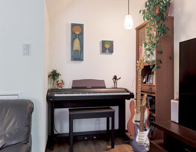 リビングの一角にはペンダントライトを新設し、趣味のスペースに。