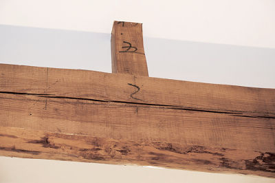梁表面には新築時に職人さんが記した文字や手作業で樹皮を剥いだ跡が残っていて、それも味わいとして残せるよう塗装を薄く仕上げてもらいました。浴室が広くなったのも嬉しいですね。手足を存分にのばせる入浴は至福のひととき!