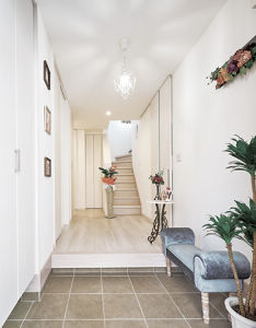 構造上必要な筋交いは残しながらも、塗装を施しインテリアのアクセントとなるよう空間全体を演出。「広々した空間」と「耐震性」という相反するご要望をバランスよく実現しました。