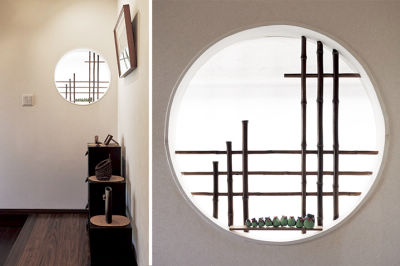 いつもやさしく迎え入れてくれた祖母の笑顔を浮かばせる、思い出の詰まった丸窓。玄関の光とアクセントにもなっています。
