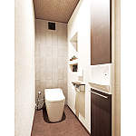 トイレは、調湿タイルを選び、機能性とデザイン性を両立。和のテイストに。