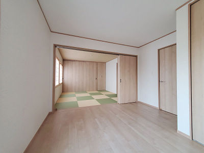 大きな間取り変更はありませんが、年末年始に大人数で集まれるよう、スクリーンウォールを採用、洋室とLDKを1つの大空間へ出来るようにしました。