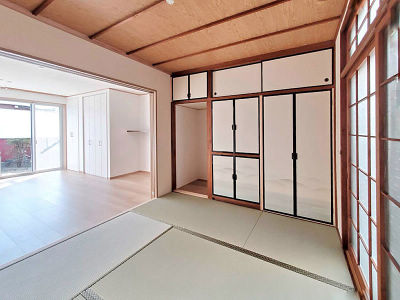 ガラス障子はそのまま再利用しました。仏間・押入部分を新しい生活スタイルに合わせて割振りをやり替えました。
