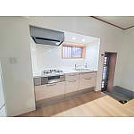キッチンは垂れ壁があるため、天井を塞ぎ、フードを平型タイプにしました。
