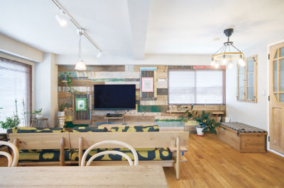 K様ご自身で足を運び、選び抜いた古材やヴィンテージ建具をひとつずつ丁寧に調整して取り付け、味わいあるLDKを実現。ご不便を感じていた水廻りの動線はレイアウトを見直し使いやすく。集中収納できるウォークインクローゼットを新設し、たくさんお持ちのファッションアイテムもスッキリ納まります。「毎日、家に帰るのが楽しみになりました」と大好評です。
