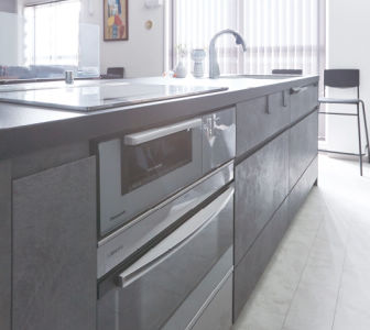 「Lクラスキッチン」にビルトインタイプのオーブンレンジをセレクト。機能が豊富で大活躍しているそうです。