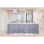 背面の半透明扉の収納とカウンター下の収納でスッキリ片付くキッチン。景色を見ながら、お子様と一緒にお菓子作りも楽しめます。