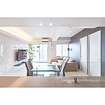 海と空を身近に感じるスタイリッシュなLDK。ベイビューと陽の光を楽しむことができます。