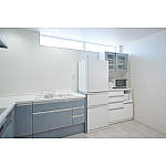ご両親と二世帯同居をしているM様。生活リズムの違いを気にせず暮らせるよう、ガレージの一部をM様世帯用のダイニングキッチンにしました。扉柄や壁紙にこだわり、シンプルかつ高級感のある空間に。また、通りから視線が入らないよう高窓を採用。リフォームすることでM様もご両親もお互いに心地よい距離感で過ごせる住まいになりました。