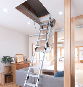 ロフトには天井収納用はしごを採用。軽量で取り扱いも簡単。普段は天井に収納できるので空間を広く使えます。