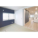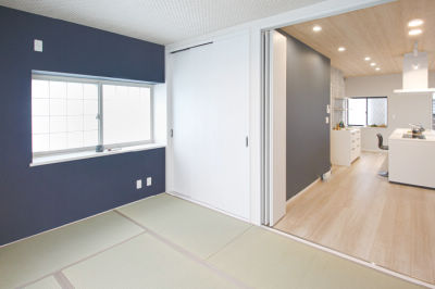 コンパクトになった和室。リビングへつながる大きな扉が開放感だけでなく風通しも実現。キッチンのクロスと色を合わせた窓側のアクセントクロスが際立ちます。
