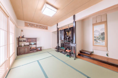 先代が大切にされていた床の間・床柱・欄間は残し、アクセントに。組子細工の障子なども取り入れ、モダンさも併せ持つ素敵な和室に仕上げました。