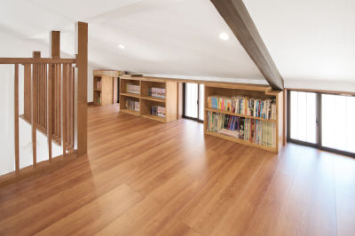 使われていなかった3階の勾配天井下のスペースを隠れ家風の読書コーナーとして活用。お孫さんたちもここで絵本を読むのがお気に入りだそう。