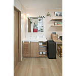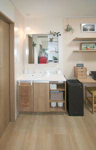 室内の一角だった場所に洗面を設置。パナソニック「シーライン」w900 オープン棚プラン。
