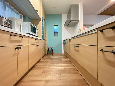 対面キッチンの配置にネックとなっていたハッチタイプの造作家具