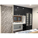 LDKで遊ぶお子様の様子がわかるよう壁付けだったキッチンを対面へ変更。