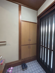人数に合わせて靴収納を増やしスッキリとした玄関。