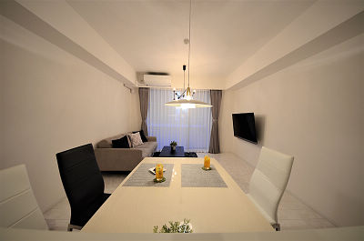 リビング・ダイニングの床は高級感のある大理石調のフローリングをご選定いただきました。対面キッチンの吊り戸・下がり壁を撤去し開放感のあるキッチンに。また、カップボードの下台にはコンセントの配線を隠すため後ろの壁を造作。吊り戸部も間接照明を設置しました。