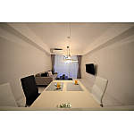 リビング・ダイニングの床は高級感のある大理石調のフローリングをご選定いただきました。対面キッチンの吊り戸・下がり壁を撤去し開放感のあるキッチンに。また、カップボードの下台にはコンセントの配線を隠すため後ろの壁を造作。吊り戸部も間接照明を設置しました。