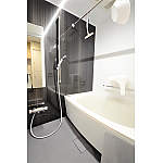 モノトーンでコーディネートされた浴室。カウンターやフロフタなど不要なモノは無くしスッキリとしたお掃除がしやすい浴室に。