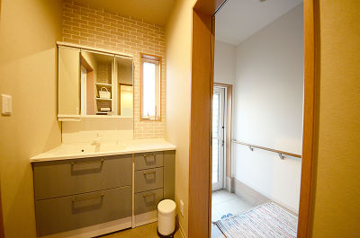 洗面化粧台の向きを変え、カウンタータイプの洗面化粧台を設置しました。2人並んでも窮屈になりません。
