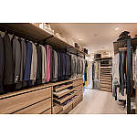 衣類やバッグ、小物など、収納物の種類と量に合わせて、収納棚や引き出しを組み合わせ。洋服選びが楽しくなり、隣接した寝室への動線もスムーズに。