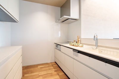 シンプルなデザインに一目惚れされたキッチン。窓の方へ向きを変え、明るく開放感のある空間に。
