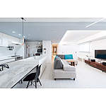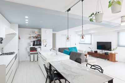 リビングに隣接していた和室も取り込んで広く開放的なLDKに。白を基調にして明るく、洗練された空間に生まれ変わりました。