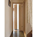リビングダイニングと廊下につながるドアは採光タイプを選びました。廊下側も明るくなりました。