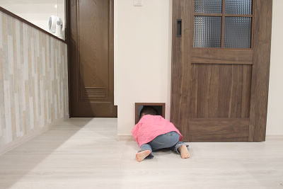 愛猫のための出入り口を造作しました。自由に出入りができます。