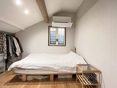 奥様のお部屋は、勾配天井が印象的な可愛らしいお部屋になりました。