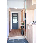 クラフトレーベルの扉と玄関収納コンポリアがセンス良く組み合わされています。