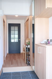 クラフトレーベルの扉と玄関収納コンポリアがセンス良く組み合わされています。