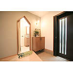 ホールは高齢のお母様を介助しながら、歩くことができるように広さを確保。玄関収納コンポリアを設置。