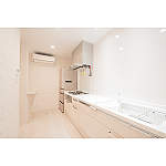 独立型のキッチンスペースでありながら、ダイニング・リビングともつながり、調理中孤独感を感じないよう配慮。また、ダイニングとの壁にカウンターを設置することで閉塞感も軽減され、適度な籠り感で落ち着いて調理できます。