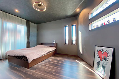 床材は、ご夫婦がひと目で気に入られた色柄を採用。すっきり見える天井埋込カーテンレールを取り入れ、スタイリッシュな寝室に。