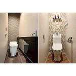 1階はシックに、2階は華やかに。ガラリと雰囲気を変えることで、印象的なトイレになりました。