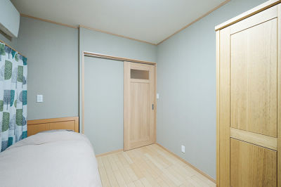 勝手口と廊下を取り込み広くなった洋室。心地よく過ごせるように断熱改修を行い、寝室としても使えます。
