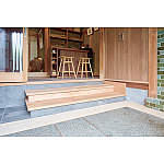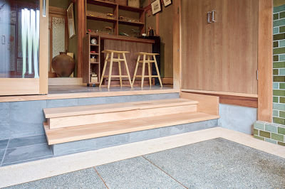土間との段差60cmは、低い2段の式台で解消。段差がゆるやかになり、昇り降りがラクになりました。
