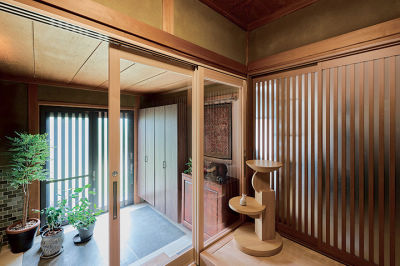 寒さ対策として引き戸を設置し、室内側との段差も式台で解消。玄関ホールの一角に念願の接客スペースを設け、昔ながらの風情を残しつつ、安心感のある空間になりました。