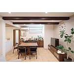 LDKは耐震補強で追加した梁に化粧を施し、デザイン性を高めました。3世代がお互いの気配を感じられる距離感で、安心して心地よく過ごせる住まいになりました。