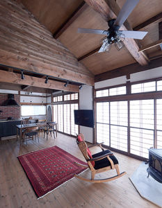 築38年の物件を大胆にリフォーム。高い天井や板張りの壁面、無垢のフローリング、薪ストーブなど、お施主様のこだわりを細部まで形に。ご家族や友人と豊かな時間を過ごすことができる、あたたかみのある空間となりました。