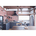 キッチンの壁面にはモルタル造形でレンガをあしらいました。効果的に黒色を取り入れて空間を引き締めています。