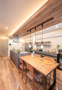 N様は夫婦ふたりが心地よく過ごせるようにと、アイランドキッチンのある住まいに全面リフォーム。ウッディで、モダンなスタイリッシュ空間に一新した広々LDKで、ご夫婦の会話も弾みます。
