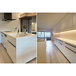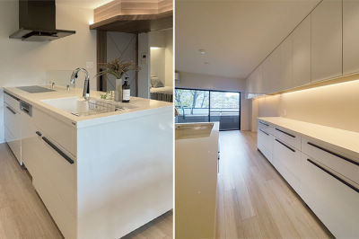 3LDKを2LDKに変更しお好みの使い勝手を創出し、明るく広がりのある空間に。間接照明を随所に取り入れて、モダンでラグジュアリーな住まいを実現しました。