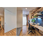 キッチンと洋室の間にあるサービスルームは、両側の引き戸を閉めれば在宅ワーク用の部屋に。インテリアカウンターを設置し収納も充実させています。